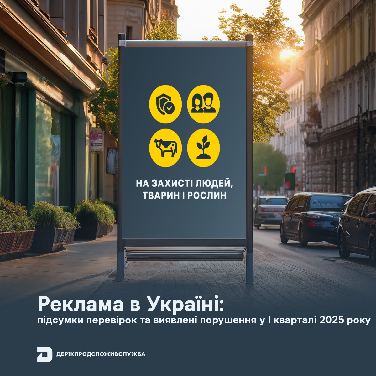 Упродовж першого кварталу 2025 року фахівці Держпродспоживслужби дослідили понад 5,3 тисячі рекламоносіїв (об’єкти зовнішньої реклами, внутрішньої, в аудіальних та аудіовізуальних медіа, в друкованих медіа, в онлайн-медіа, на платформах спільного доступу до відео та інформації, у сфері електронних комунікацій, на транспорті)