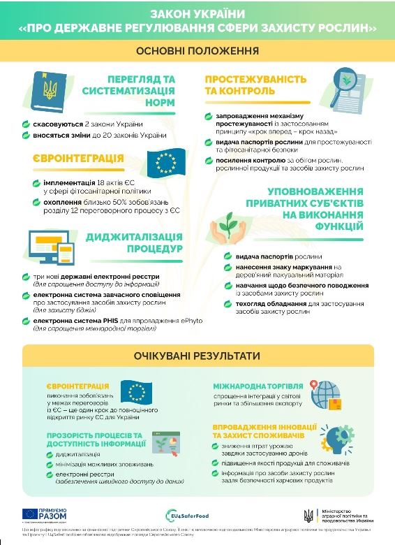17 січня 2028 року набуде чинності Закон України «Про державне регулювання сфери захисту рослин», який удосконалює правове регулювання в цій сфері та наближає українське законодавство до стандартів ЄС.