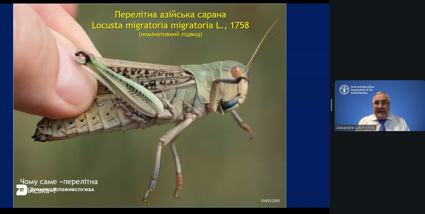 За підтримки Продовольчої та сільськогосподарської організації ООН (FAO Ukraine) відбувся онлайн-тренінг з моніторингу та контролю саранових ( Locusta migratoria ) та зменшення ризиків використання пестицидів для державних фітосанітарних інспекторів — представників Держпродспоживслужби та її територіальних органів.