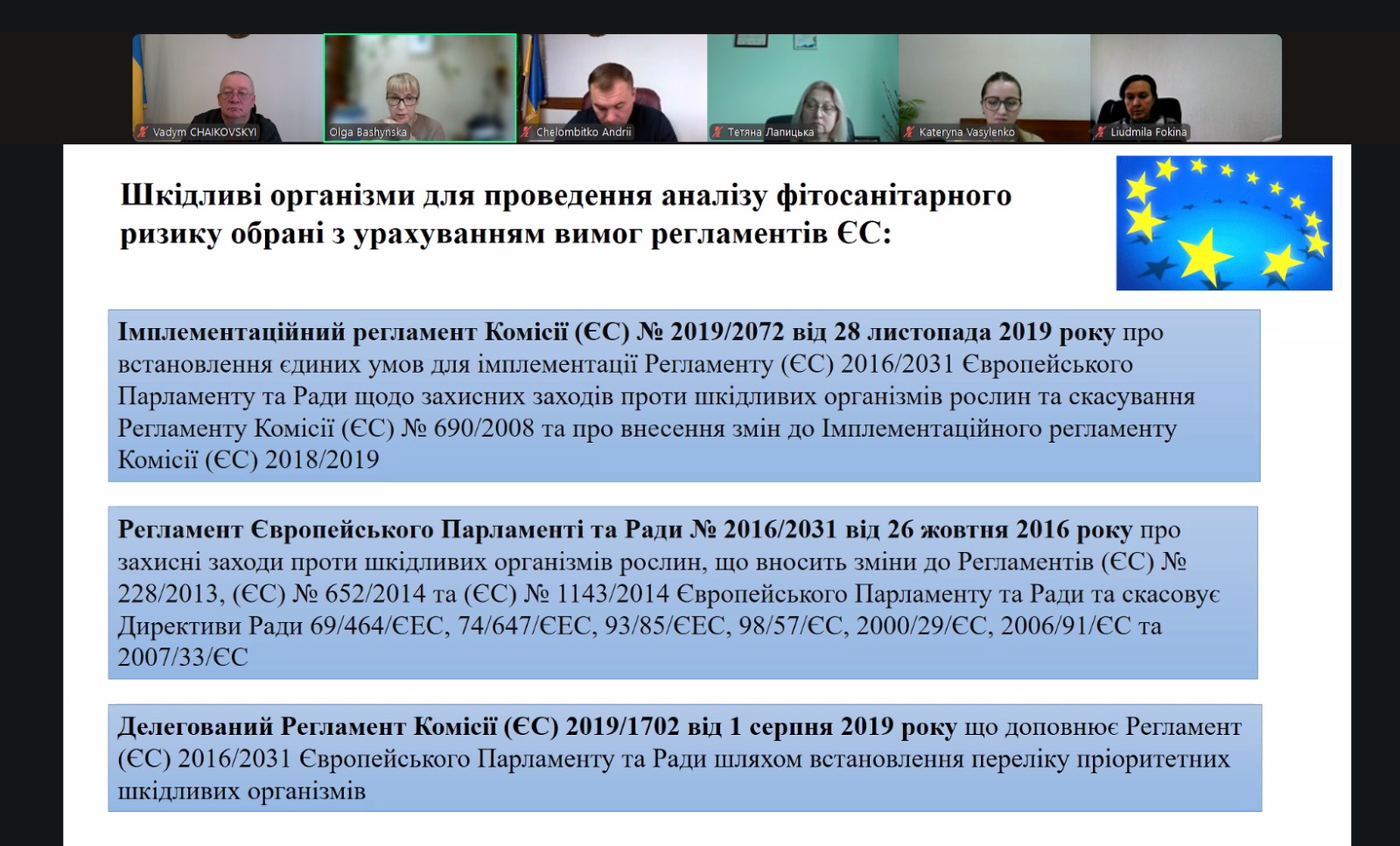 Відбулося засідання робочої групи щодо реалізації державної політики у сфері карантину рослин в частині проведення аналізу фітосанітарного ризику шкідливих організмів відповідно до вимог законодавства у сфері карантину рослин, положень міжнародних стандартів з фітосанітарних заходів та стандартів Європейської і Середземноморської організації захисту рослин.
