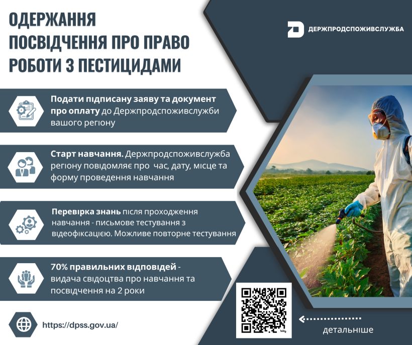 отримання свідоцтва з питань безпечного поводження з пестицидами.