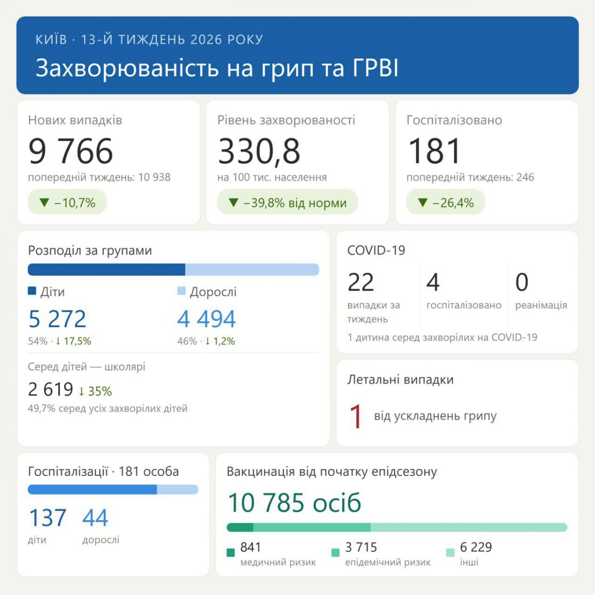Від початку епідсезону щеплено 10 785 осіб, з них: