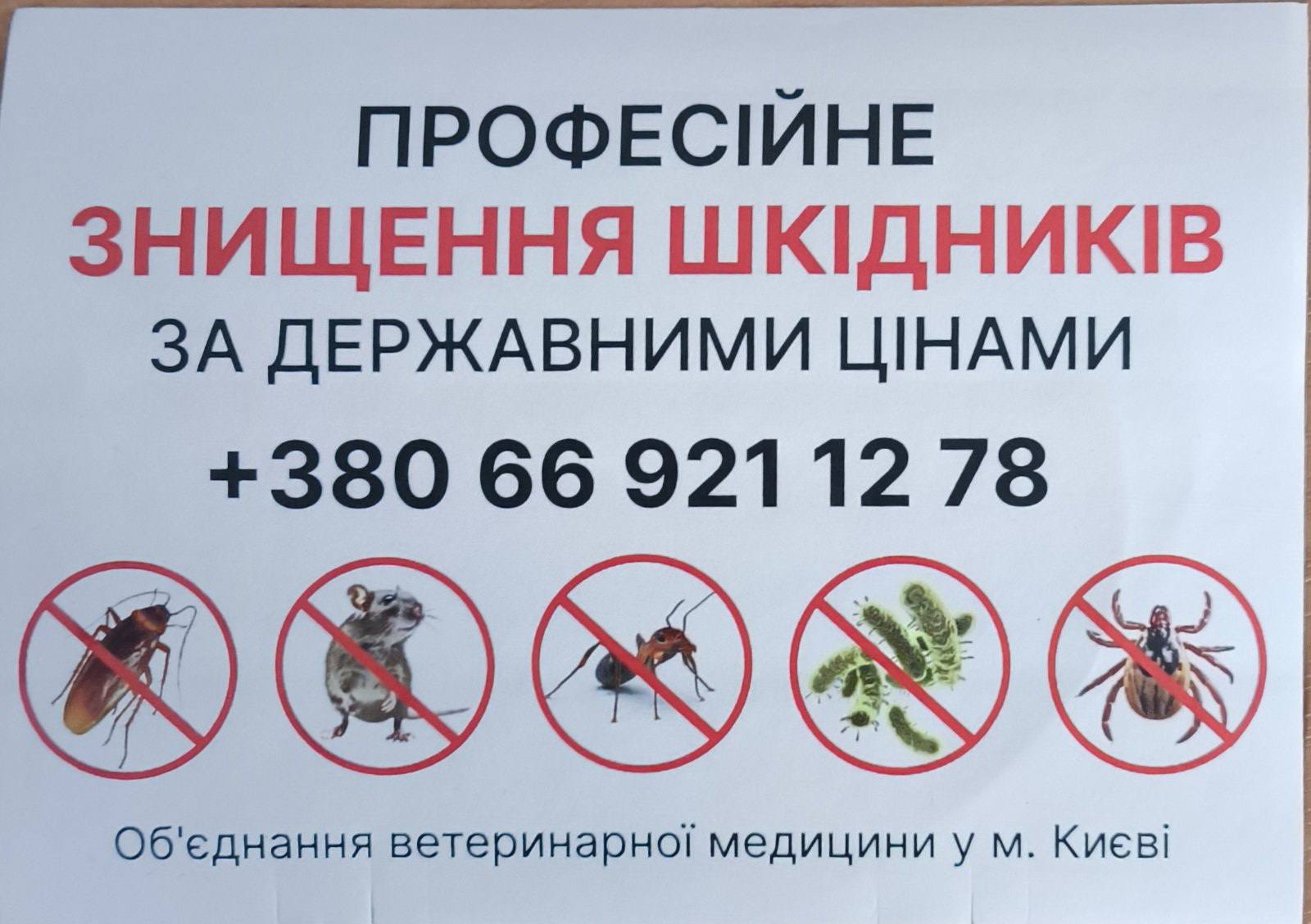 Відділ проведення санітарних, дезінфекційних, дезінсекційних та дератизаційних робіт Об`єднання ветеринарної медицини в м. Києві проводить заходи щодо знищення клішів у фізичних чи юридичних осіб, на будь-яких об'єктах не залежно від їх форми власності, приналежності чи підпорядкування.