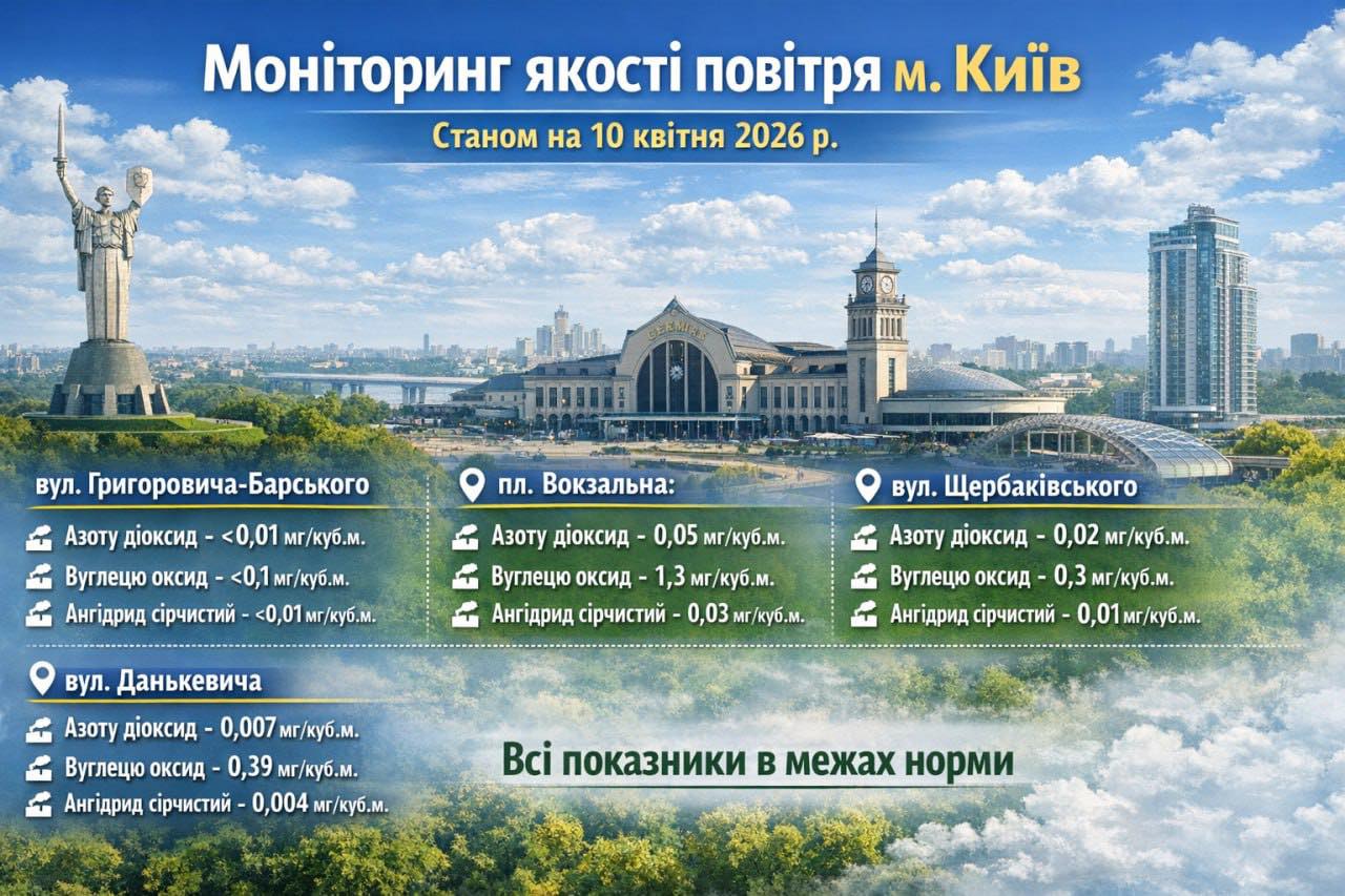 Стан атмосферного повітря в м. Києві 10 квітня 2026 року