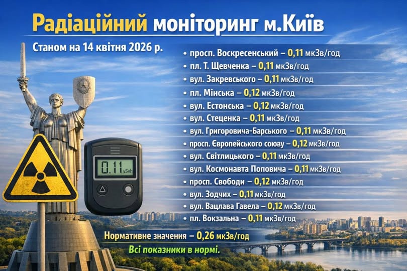 Моніторинг радіаційного фону в м. Києві 14 квітня 2026 року