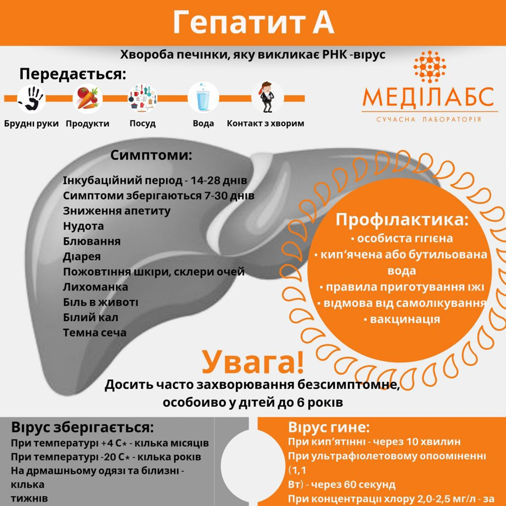Інкубаційний період вірусного гепатиту А зазвичай триває 14–28 днів.