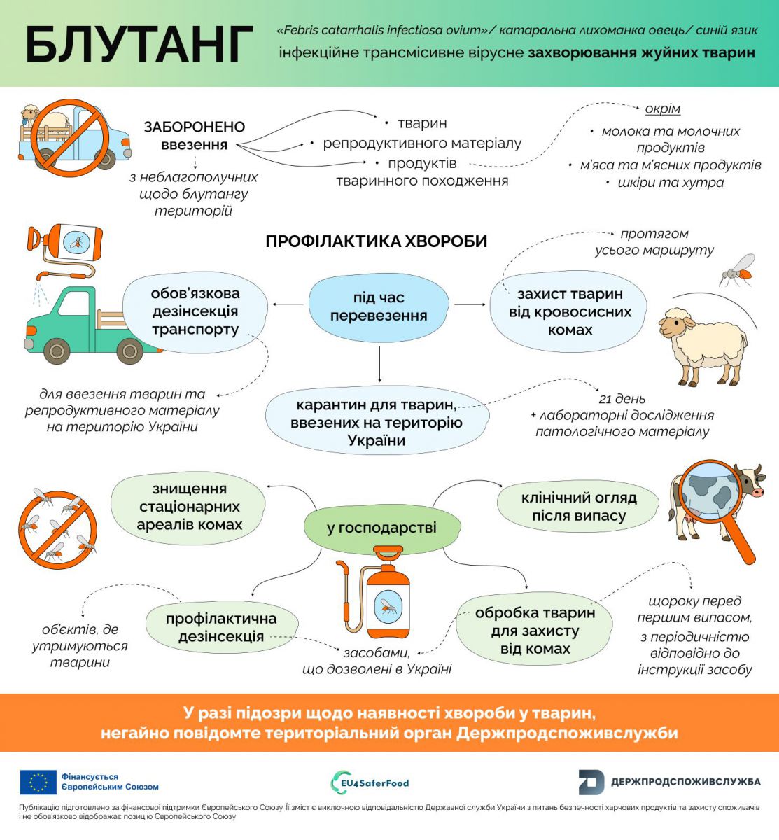 Довідково. Блутанг – це інфекційне вірусне захворювання жуйних тварини, переносниками якого є комахи роду Culicoides. Особливо сприйнятливі - вівці та велика рогата худоба.