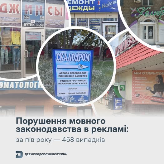 За перше півріччя 2025 року Держпродспоживслужба зафіксувала 458 випадків порушень мовного законодавства у сфері реклами. Це — найбільший показник серед усіх видів порушень у цій сфері.