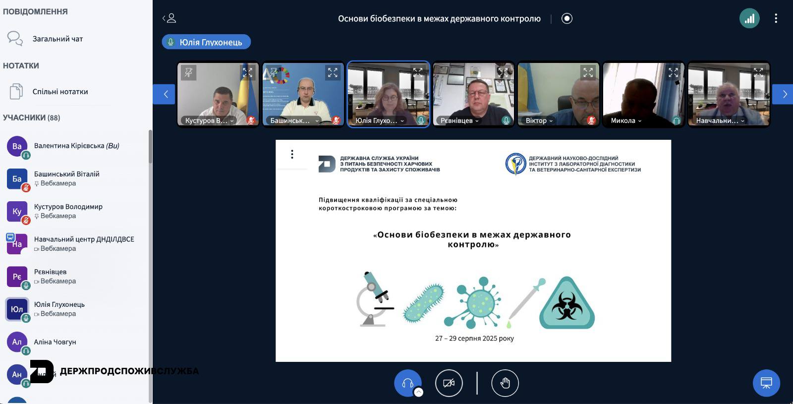 В Навчальному центрі ДНДІЛДВСЕ відбулося підвищення кваліфікації за спеціальною короткостроковою програмою «Основи біобезпеки в межах державного контролю», що об’єднало фахівців з усіх регіонів України. У заході взяли участь представники територіальних органів Держпродспоживслужби та спеціалісти державних лікарень ветеринарної медицини.