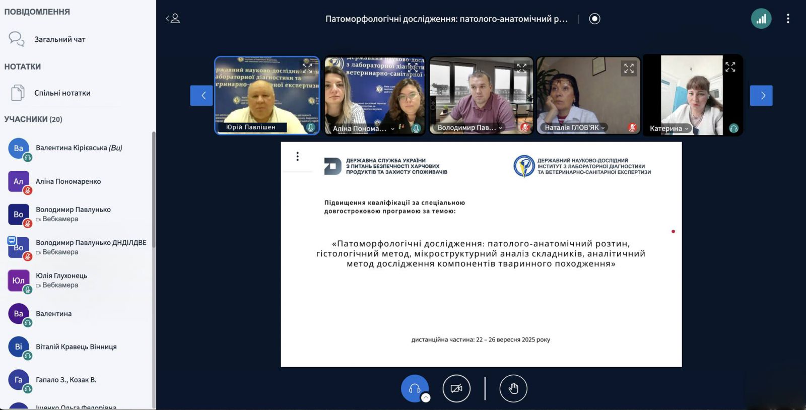 У ДНДІЛДВСЕ відбувся вебінар-презентація нового дистанційного курсу «Заходи державного контролю на бійнях. Досвід Європейського Союзу», розробленого ДНДІЛДВСЕ спільно з проєктом EU4SaferFood, Міністерством аграрної політики Франції, Ліонською ветеринарною школою (ENSV-FVI) та Держпродспоживслужбою.