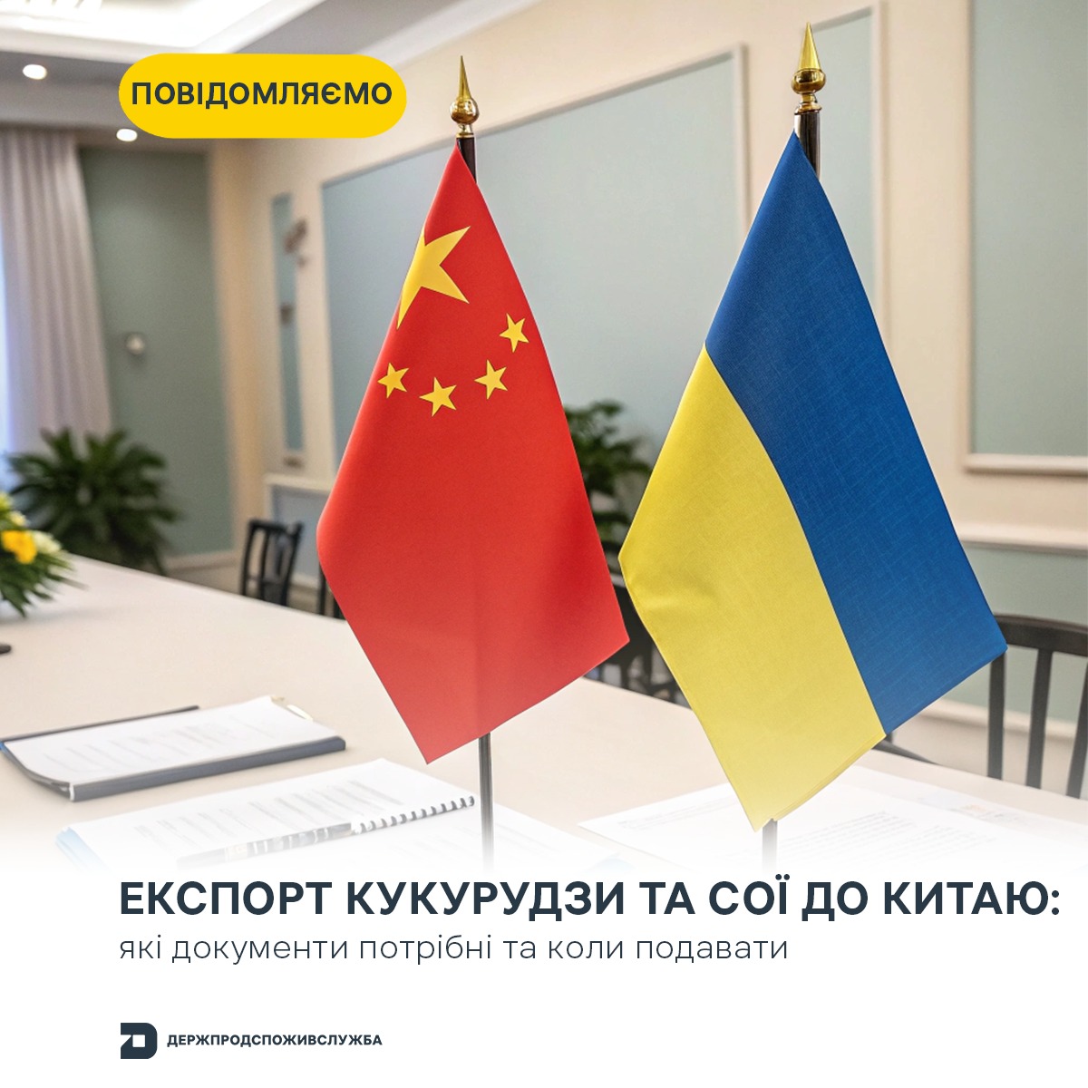 Держпродспоживслужба нагадує: щоб експортувати кукурудзу та сою до Китаю, потрібно подати документи для включення до Переліків осіб, що планують експорт кукурудзи та сої до Китайська Народна Республіки до 15 жовтня 2025 року.