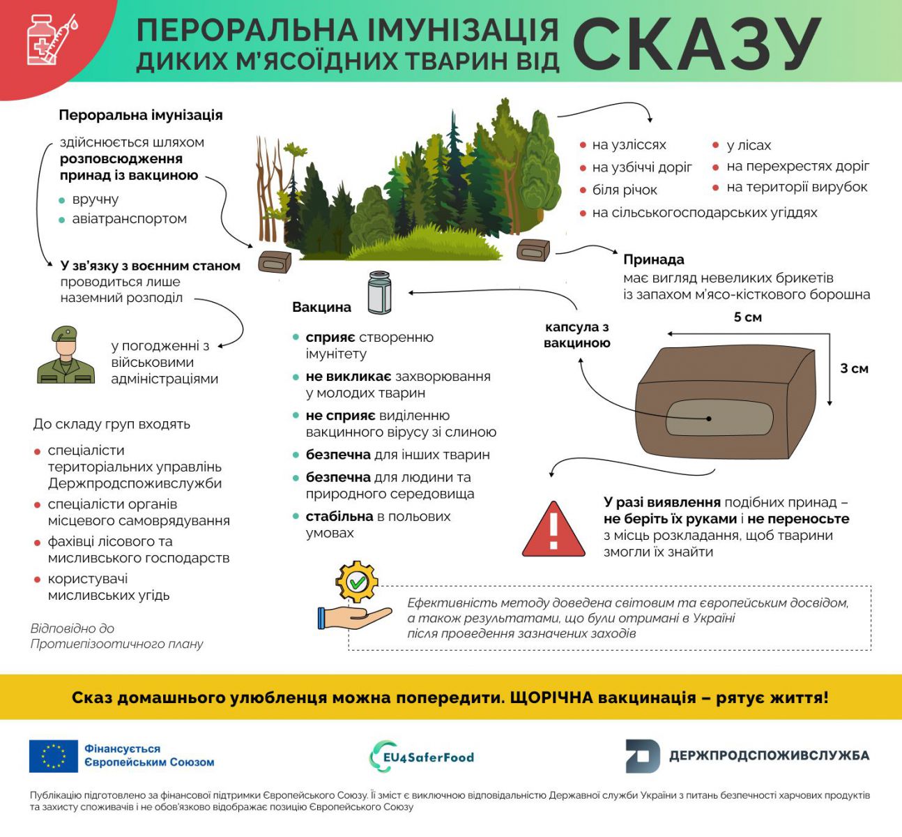 Більше про імунізацію диких м’ясоїдних тварин, зокрема в умовах війни, – у нашій спільній із Держпродспоживслужбою інфографіці.
