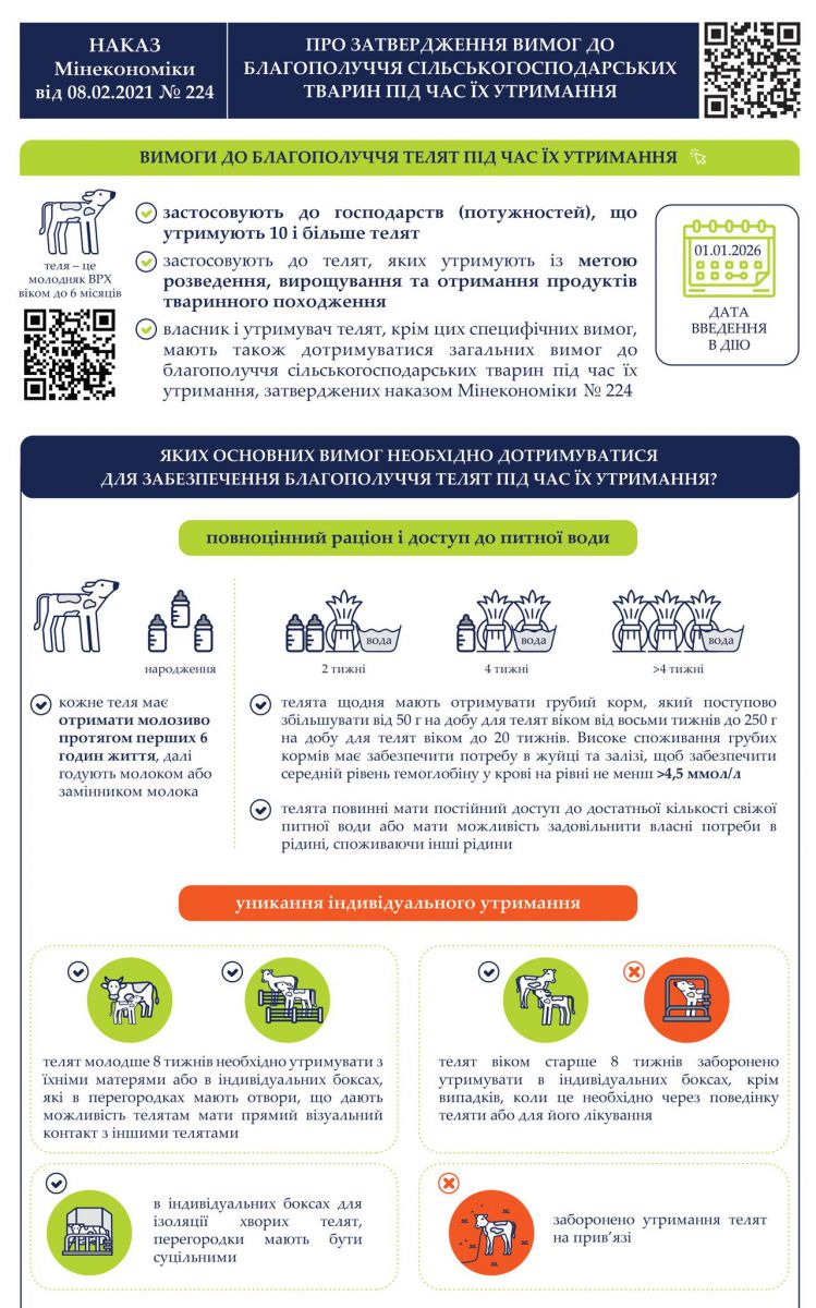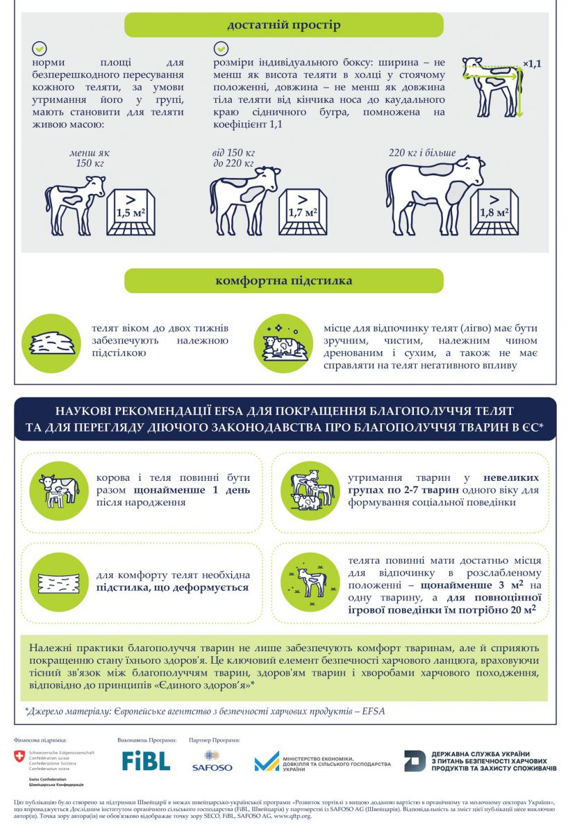На підтримку впровадження цих правил у межах швейцарсько-української програми Quality FOOD Trade Program підготовлено спеціальну інфографіку, яка наочно пояснює ключові вимоги до утримання телят.