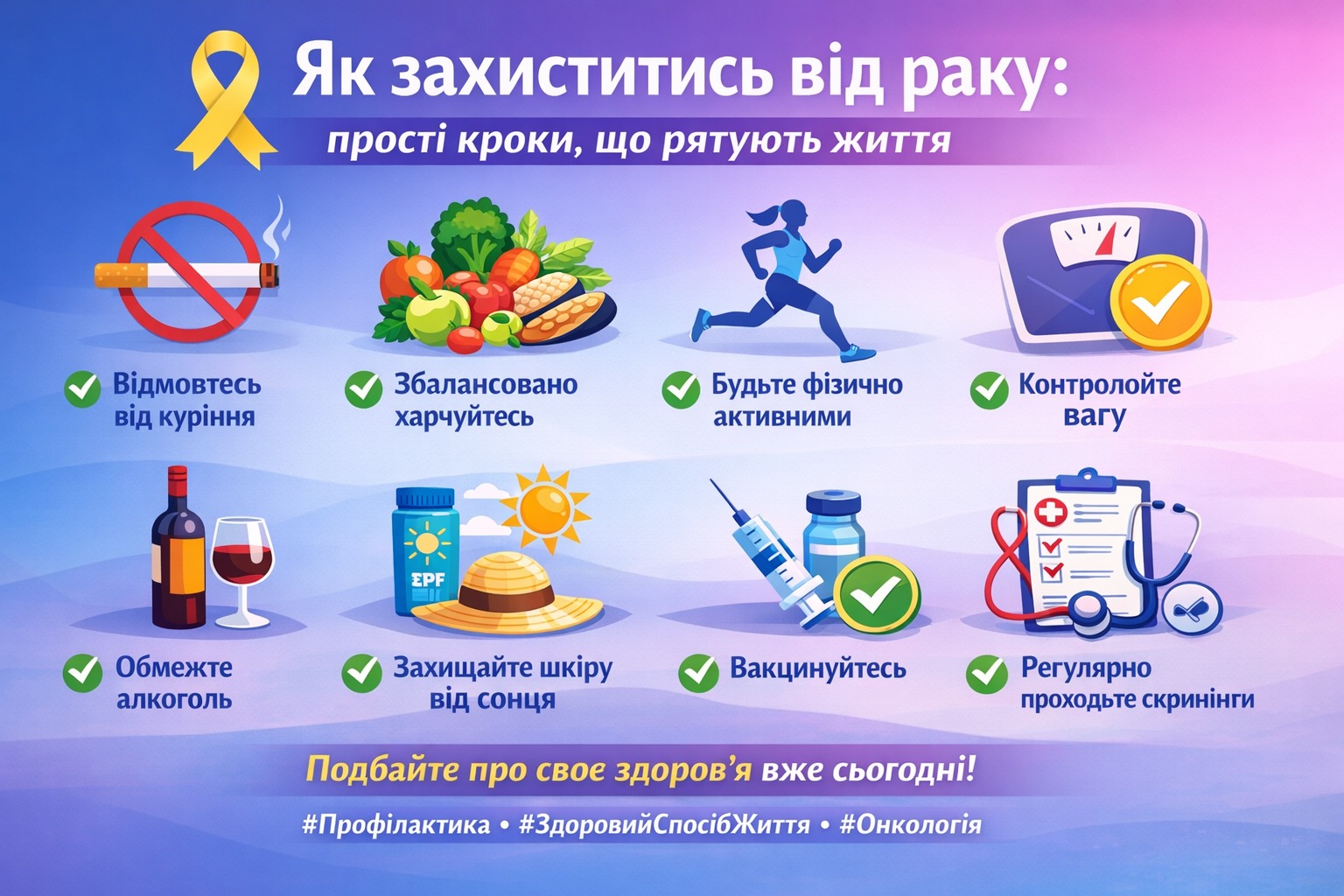Головне: профілактика — це не разова дія, а стиль життя. Навіть невеликі зміни, зроблені сьогодні, зменшують ризик у майбутньому.