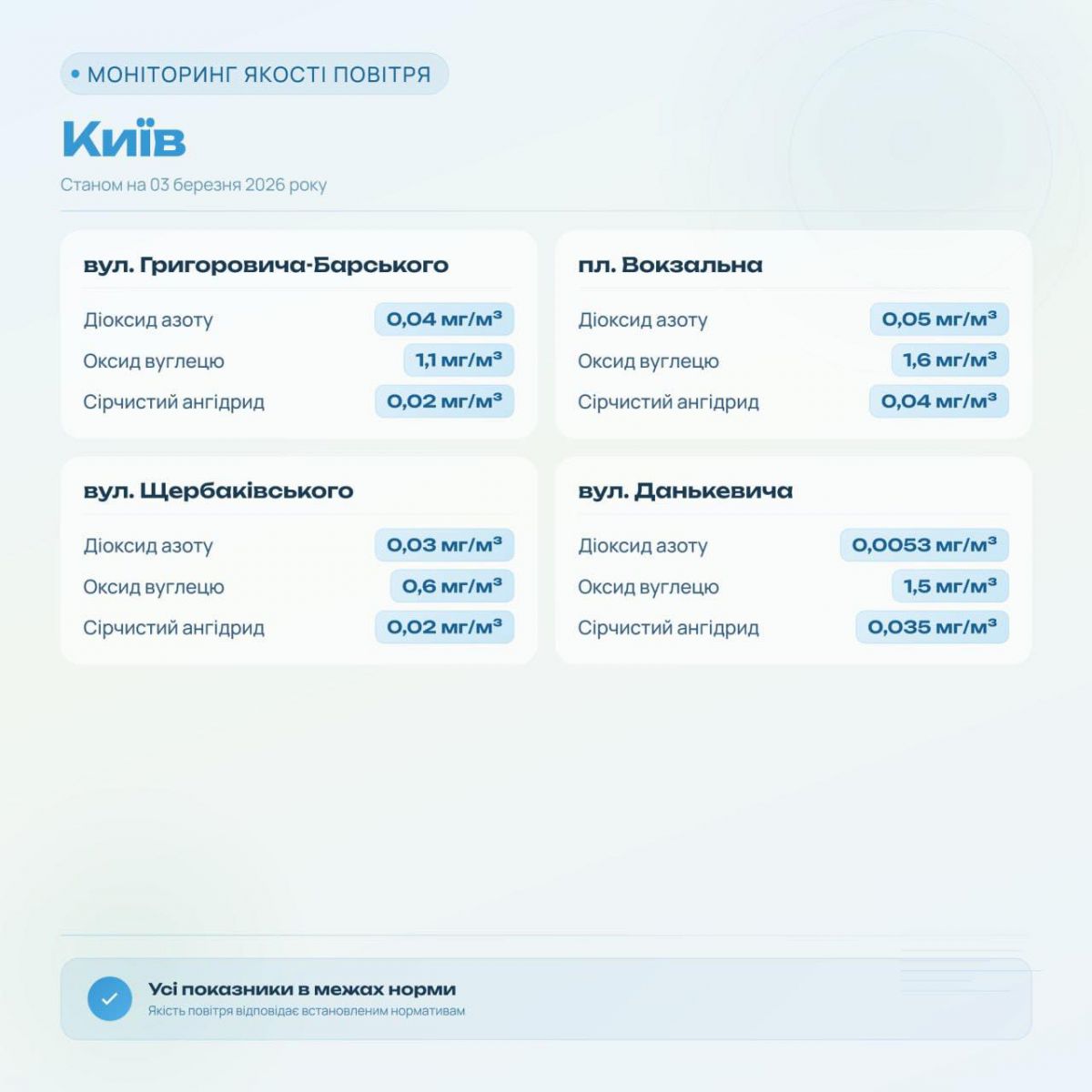 Стан атмосферного повітря в м. Києві 3 березня 2026 року