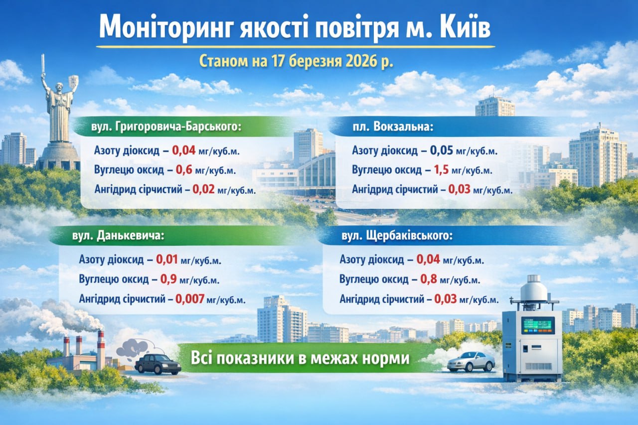 Стан атмосферного повітря в м. Києві 17 березня 2026 року
