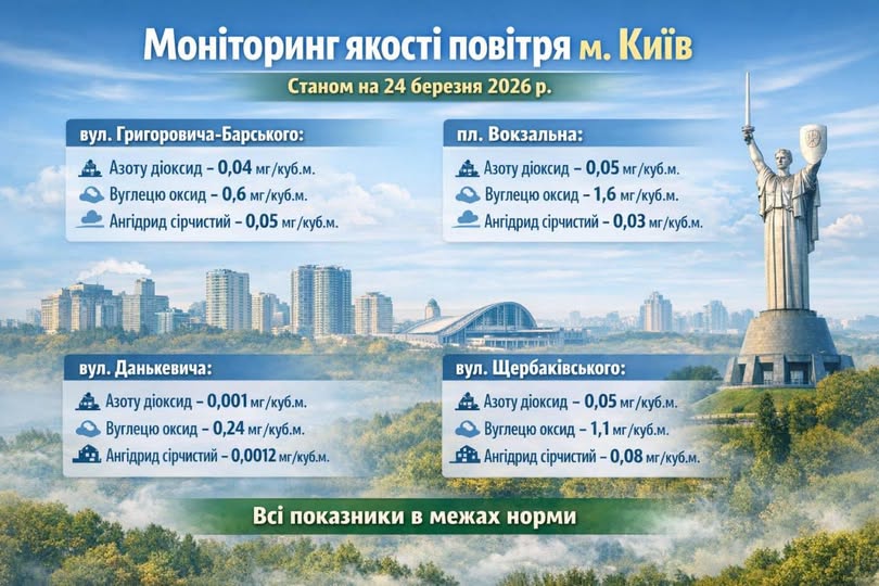 Стан атмосферного повітря в м. Києві 24 березня 2026 року
